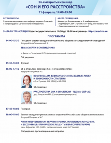 56-й семинар «Сон и его расстройства» 11 февраля на новой площадке (Воздвиженка, 9)